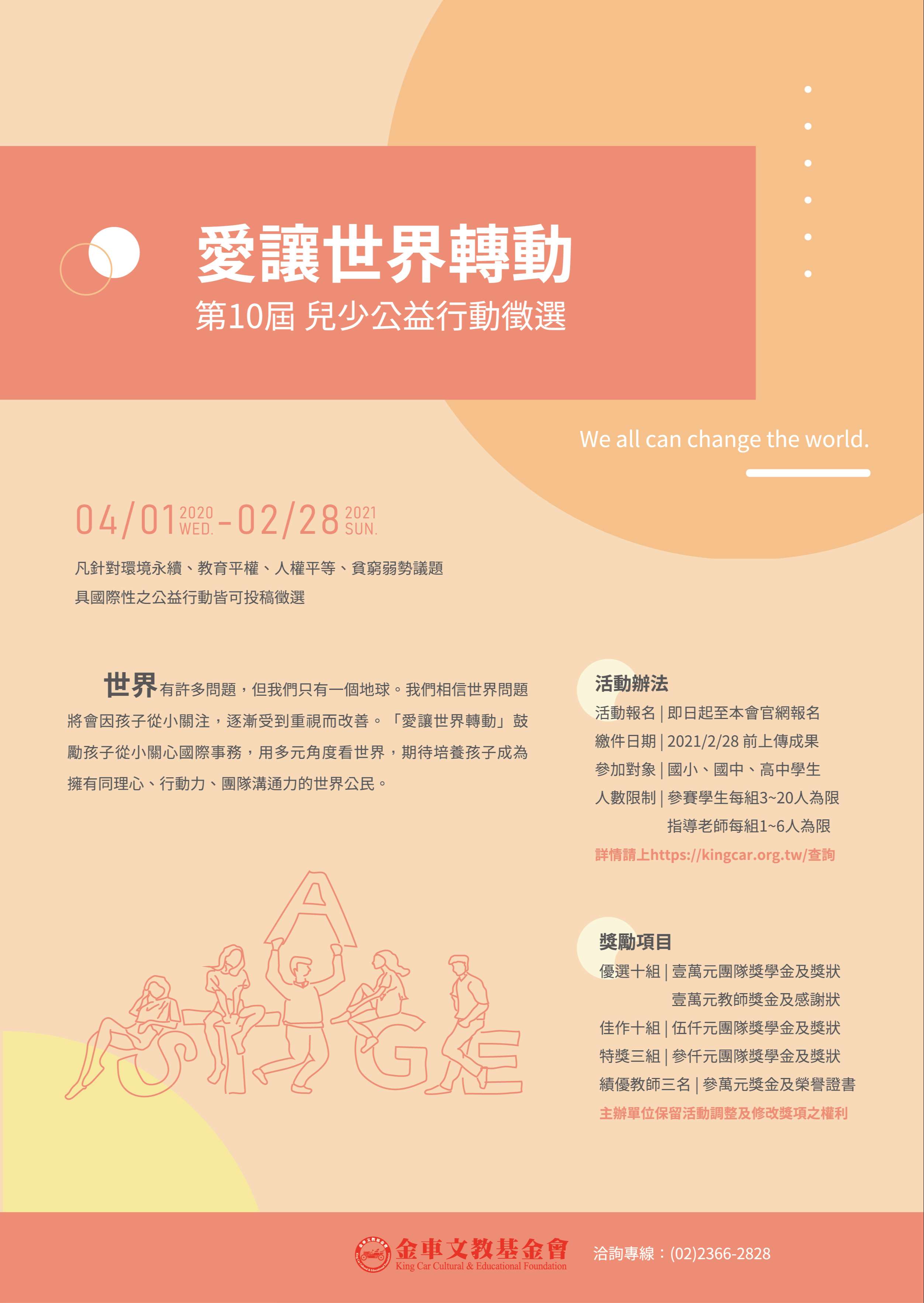 二、「愛讓世界轉動 兒少公益行動」徵選資訊