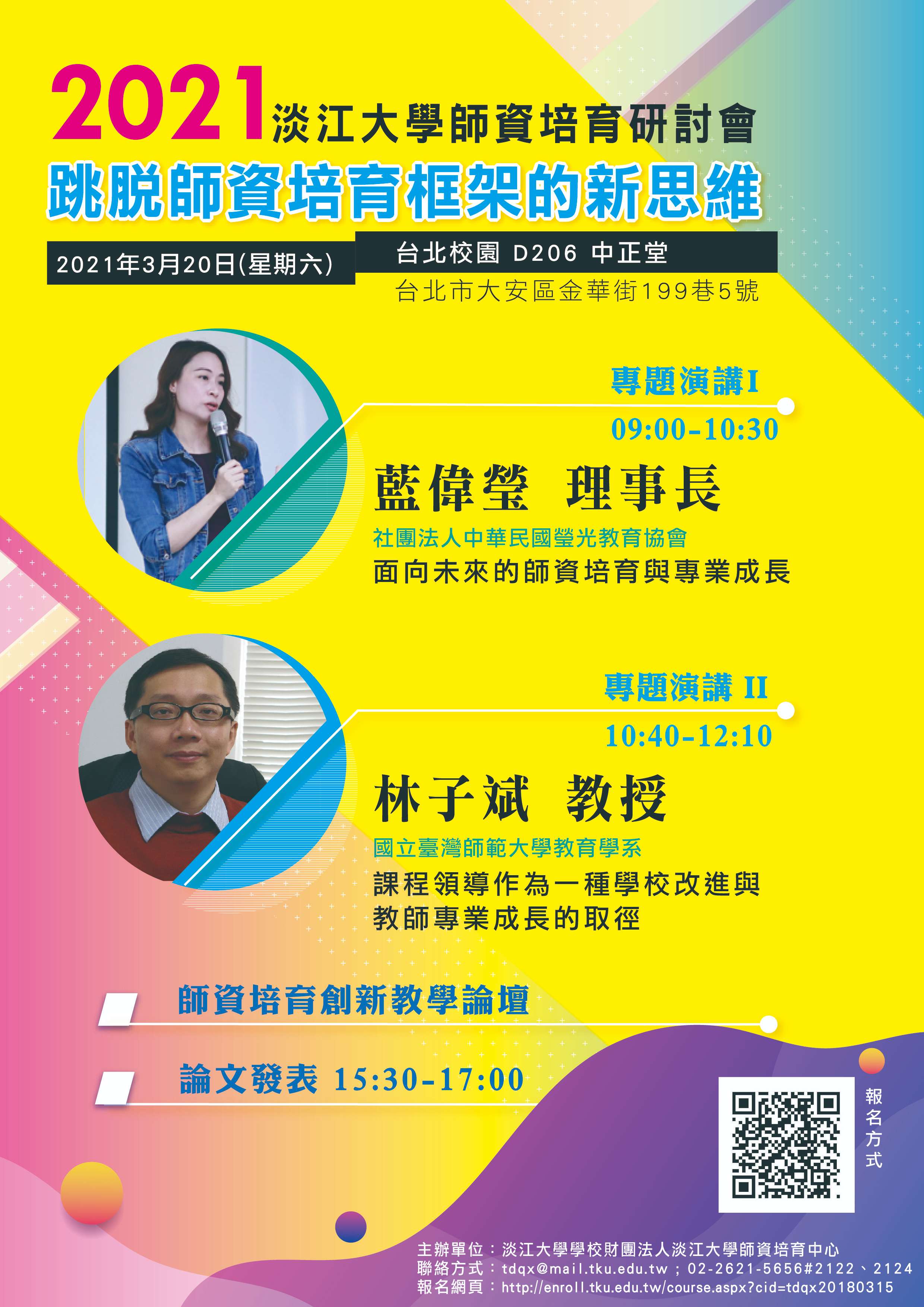 五、報名日期及方式:即日起至110年3月12日(星期五)止; 採線上報名參加,連結網址為http://enroll.tku.edu.tw/course.aspx?cid=tdqx20210320&l=c。或至全國教師在職進修網報名。
