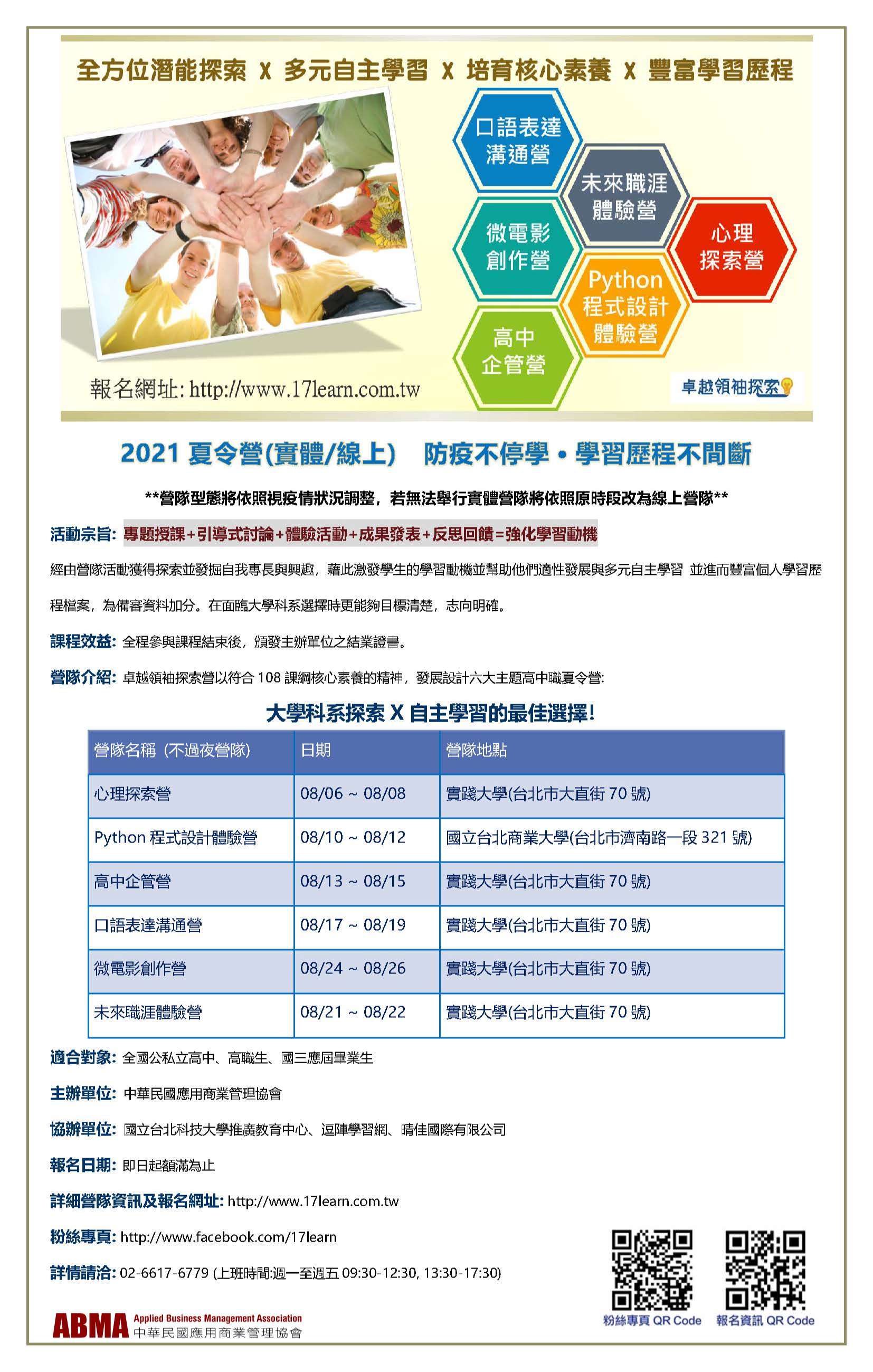 更多營隊訊息及報名網址: http://www.17learn.com.tw
