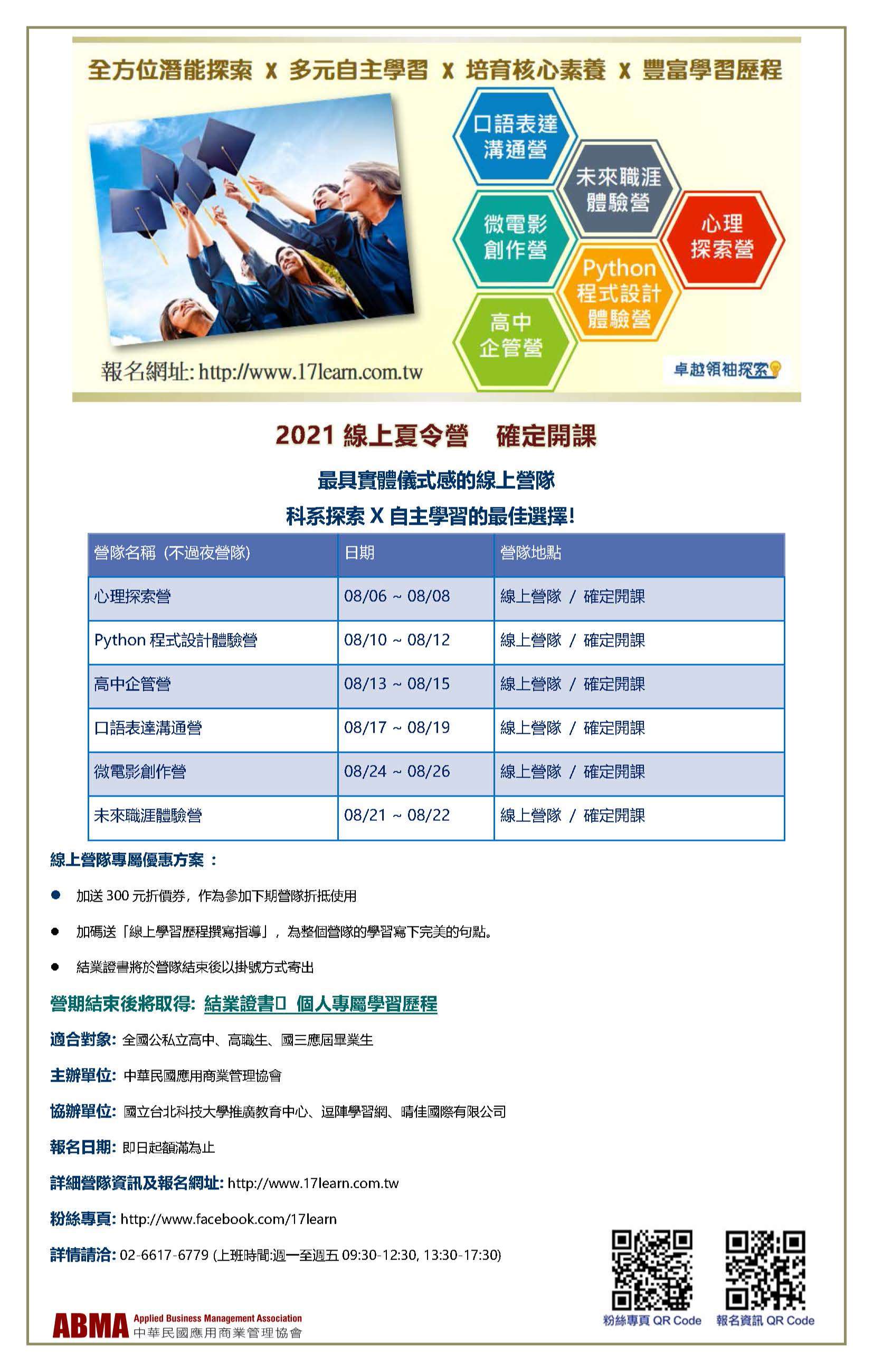營隊訊息及報名網址: http://www.17learn.com.tw