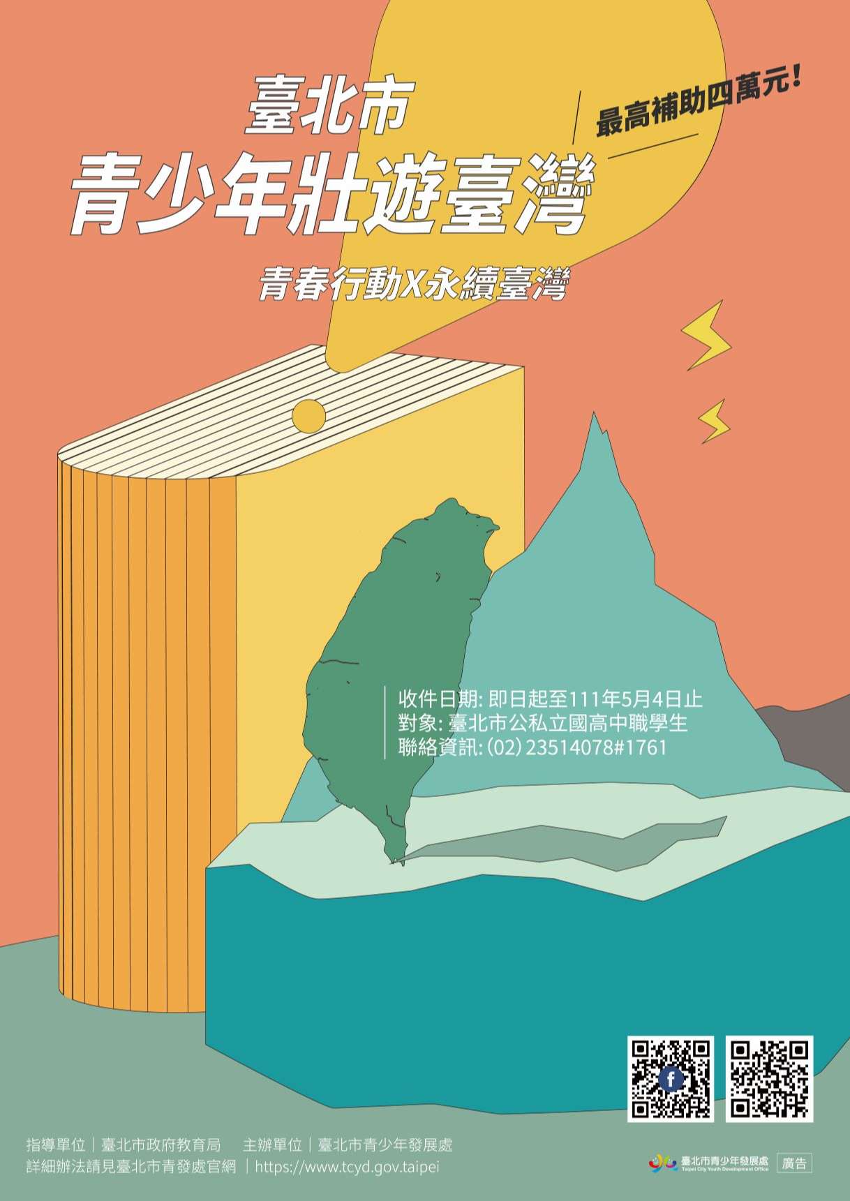 詳細辦法可見青發處官網(https://www.tcyd.gov. taipei) ;若對本計畫有任何問題,請洽聯絡窗口: (02)2351-4078分機1761 莊先生。