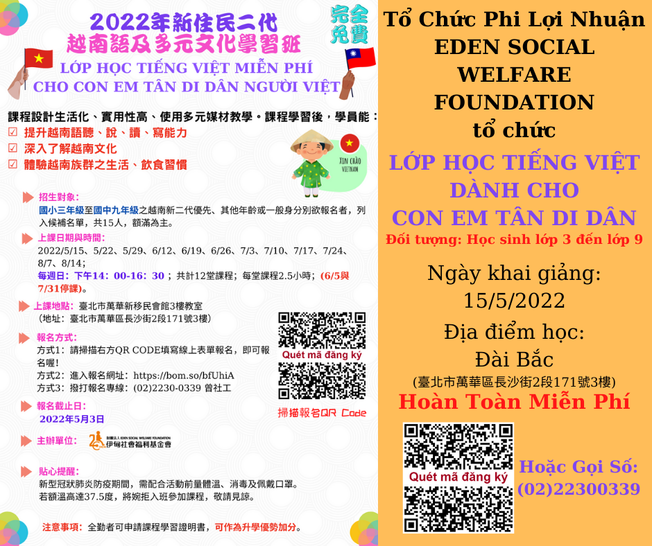 三、本會於111年辦理「新二代越南語及多元文化學習班」課程(111/5/15-111/8/14):