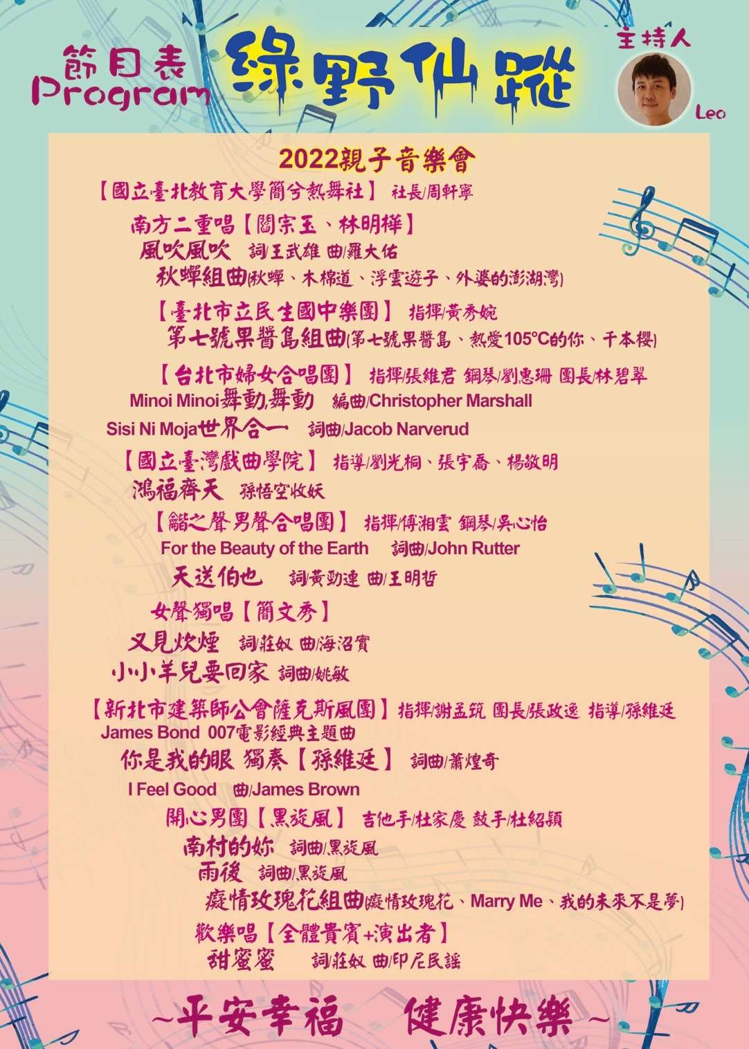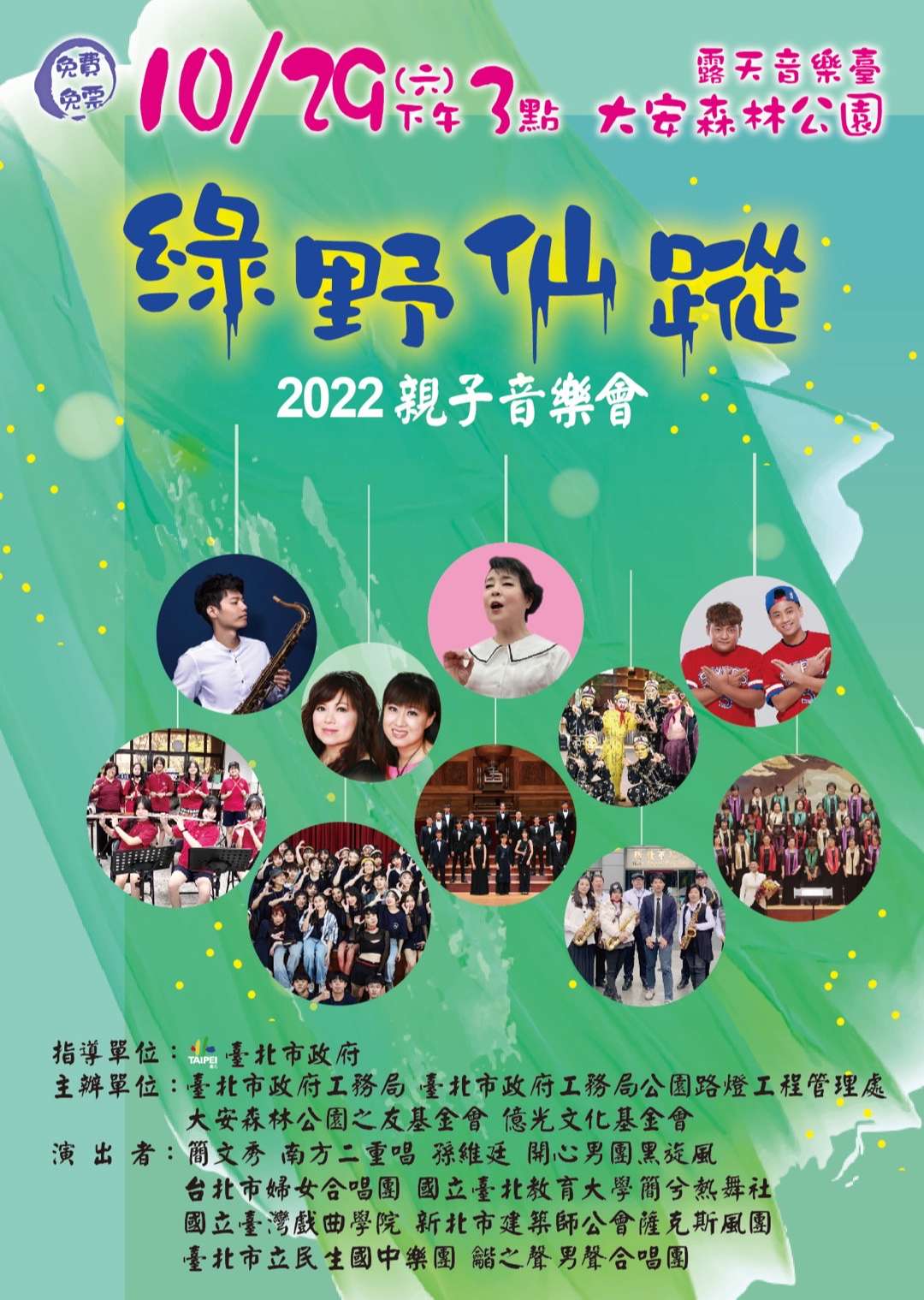 「綠野仙蹤 2022 親子音樂會即將於 10 月 29 日下午 3 時 00 分於大安森林公園露天音樂台舉辦,邀請您共同參與這場午後音樂 饗宴!」
