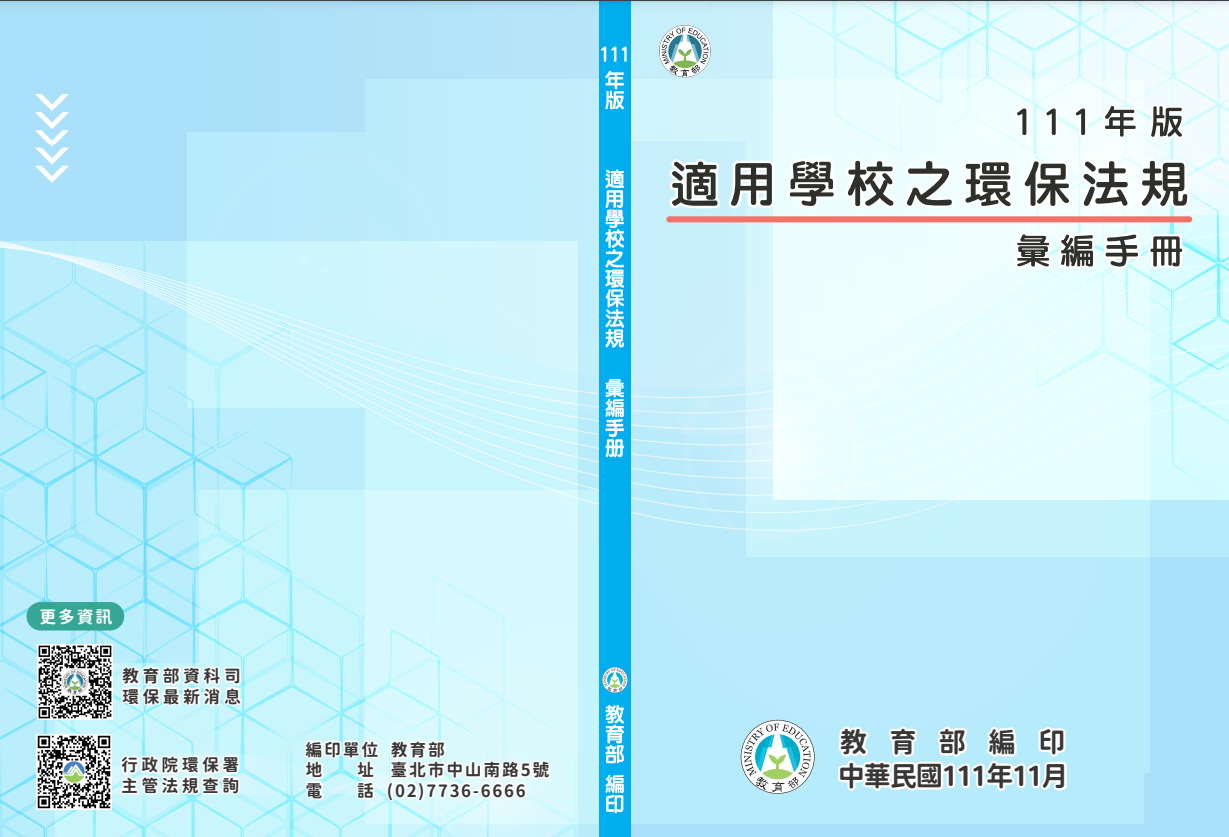 教育部更新編定「111年版適用學校之環保法規彙編手冊」。