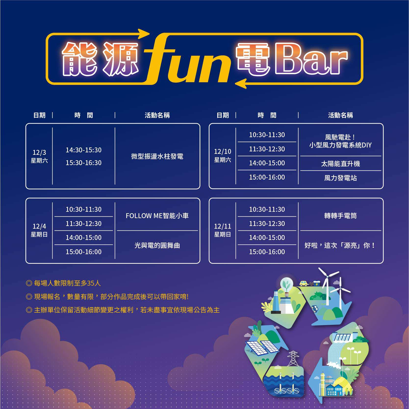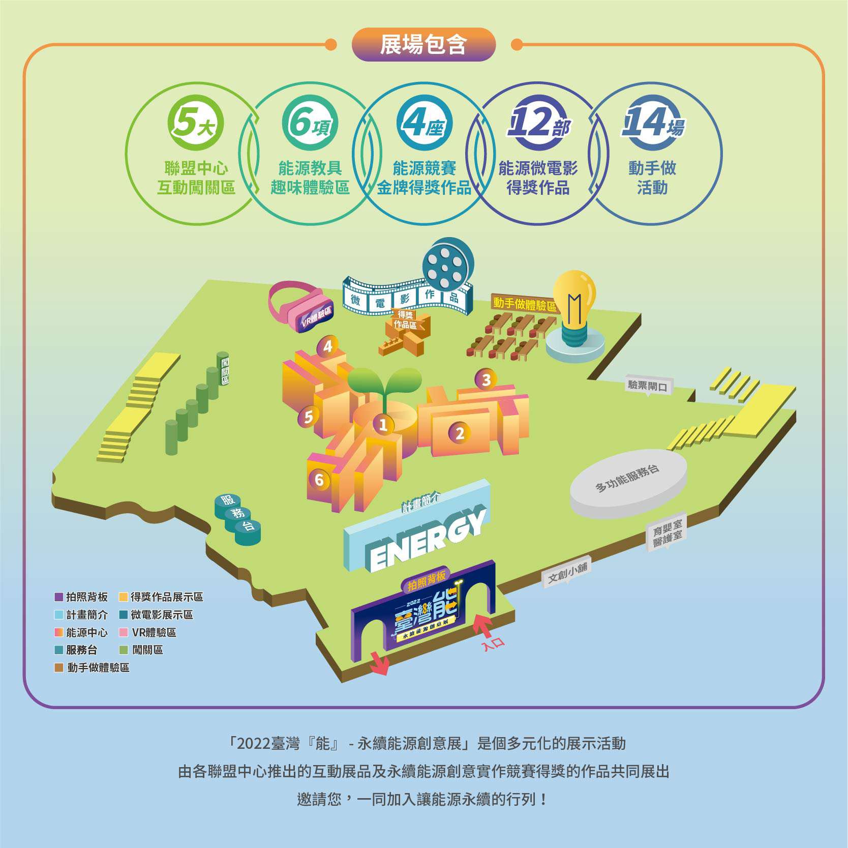 三、展示會場由主辦單位及計畫項下各參展單位提供之能源科技教具,可供觀眾現場參觀體驗,歡迎各級學校師生前往參觀。