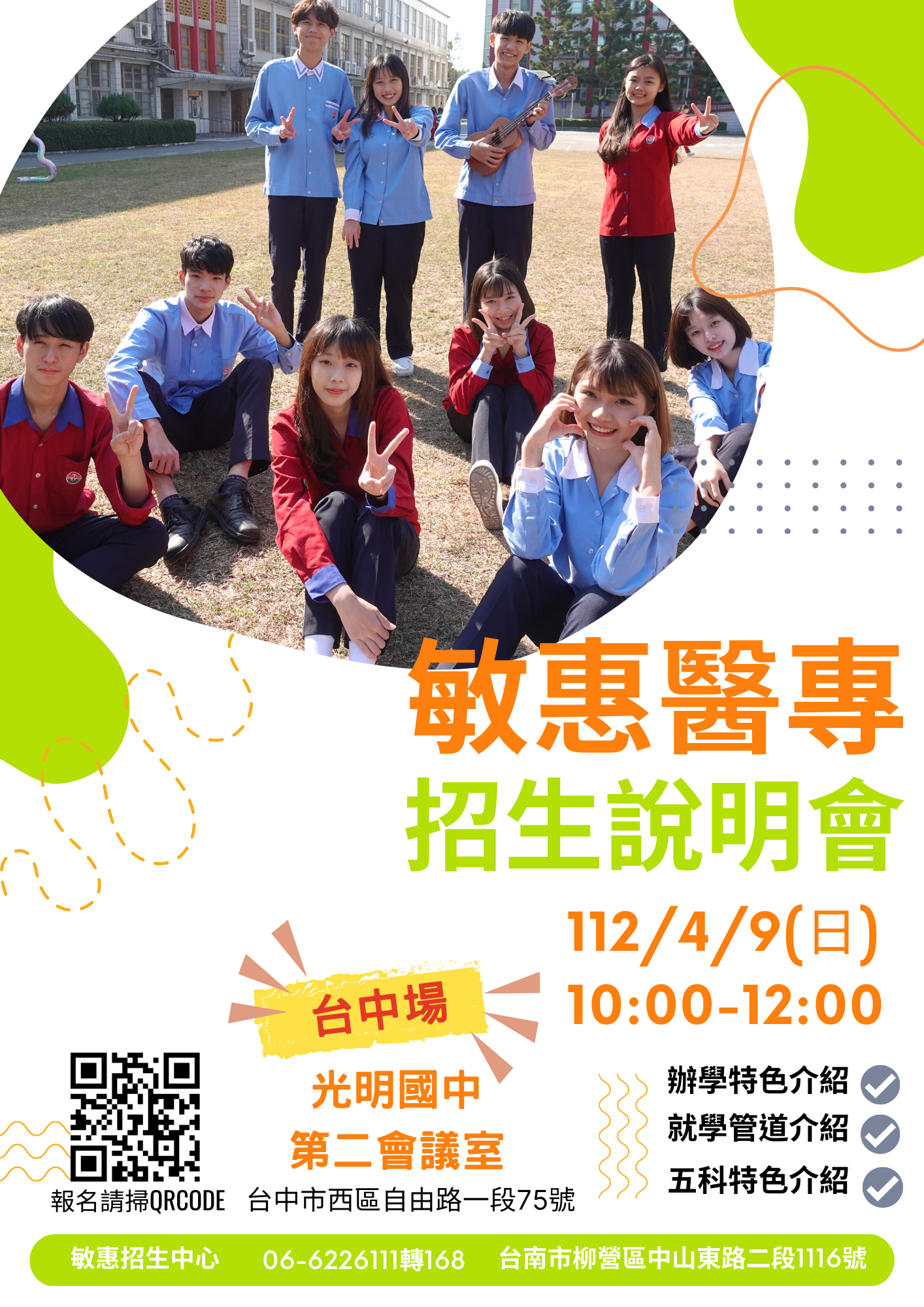 一、本校為五專醫護類學校, 設有「護理科」、「幼兒保育科 、「美容保健科」、「牙體技術科」、「長期照顧與健康促進管理科」,為提供貴校學生及家長了解五專入學管道及升學醫護類科之未來發展。