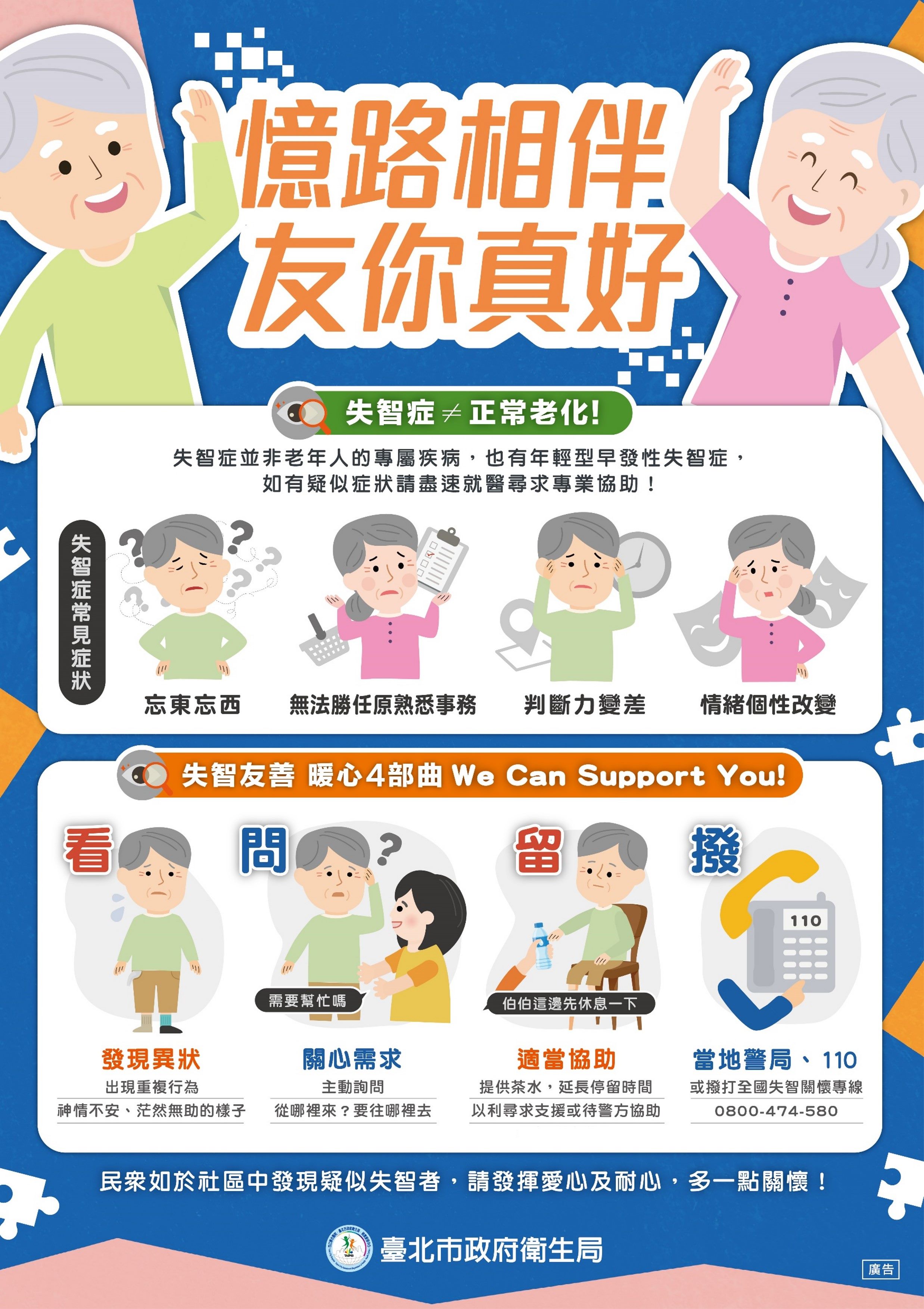宣傳北市衛生局製作「憶路相伴、友你真好」認識失智症。(廣告)