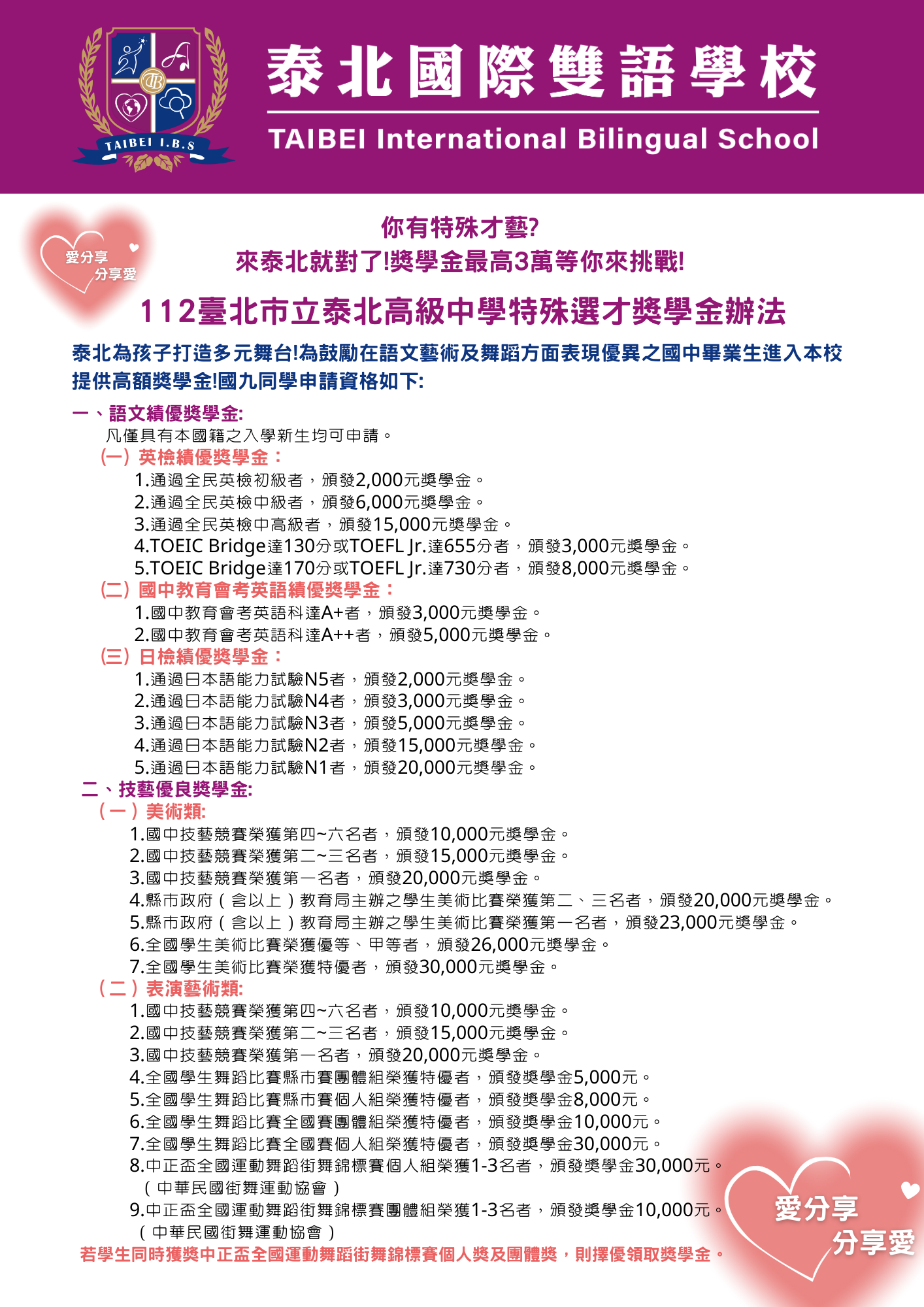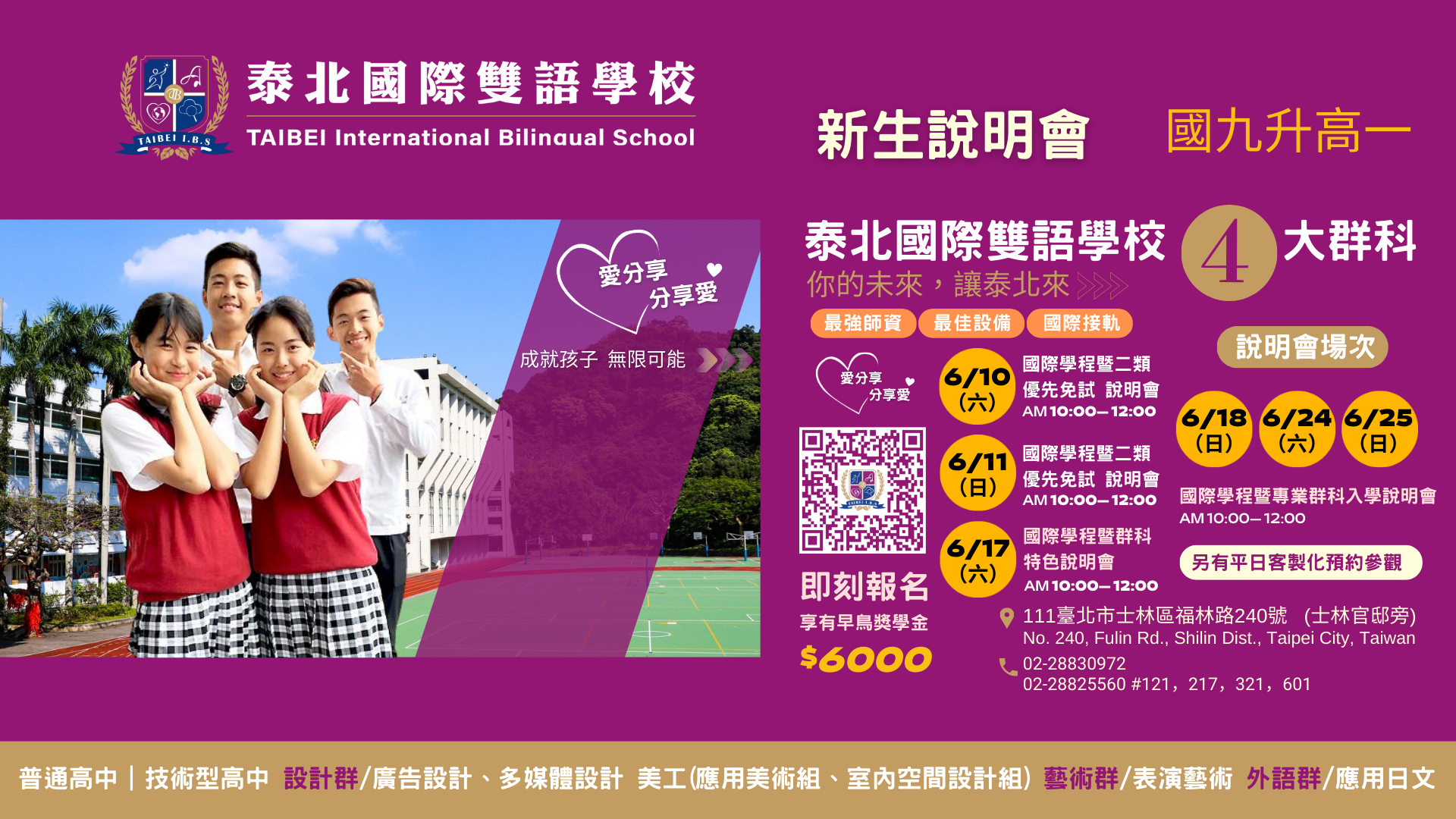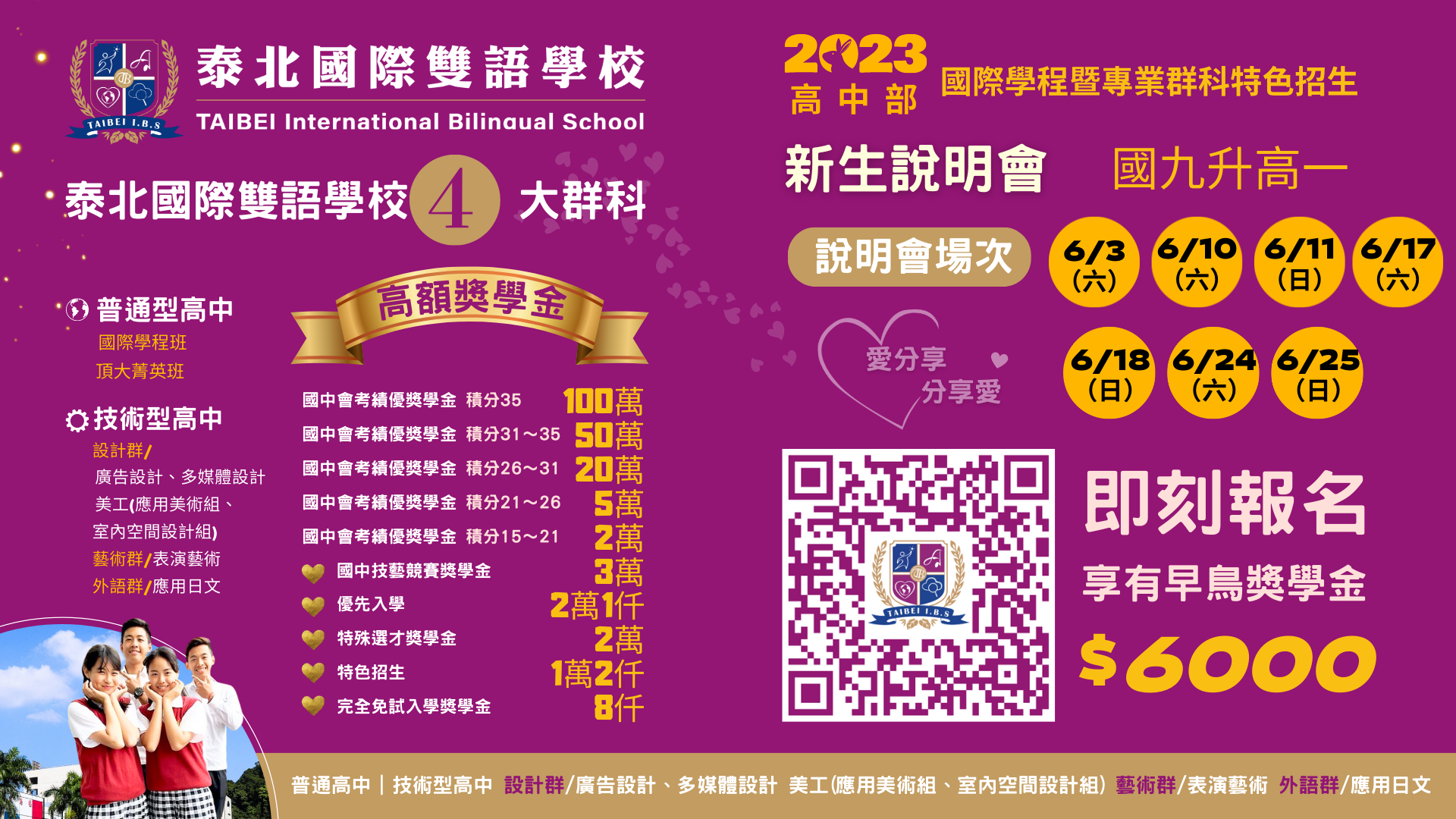 一、為逐步落實「免試入學、適性發展」政策,以紓緩學生升 學壓力,引導國中生適性發展,特辦理免試入學說明會推 廣之。6月30日前完成入學手續,享有6000元早鳥獎勵。