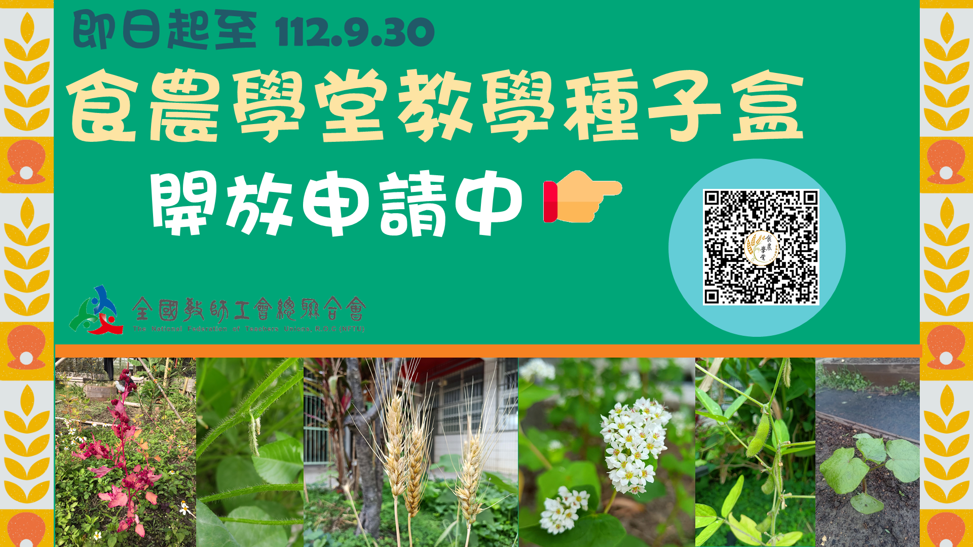 教育部國民及學前教育署與全國教師工會總聯合會共同辦理112學年度「近土親農─食農學堂」融入課程與教學,歡迎教師踴躍參與。