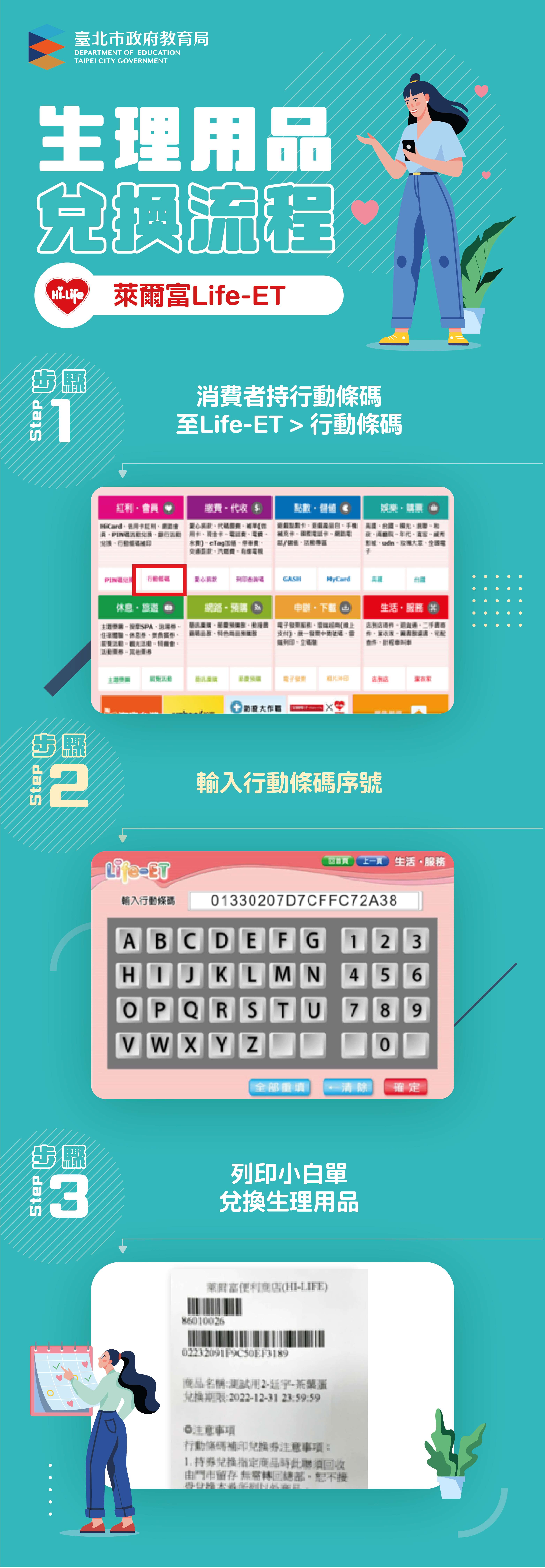 「112年國中小女性生理用品補助計畫」第6期(8月)兌換 券,兌換期限至112年9月30日止。