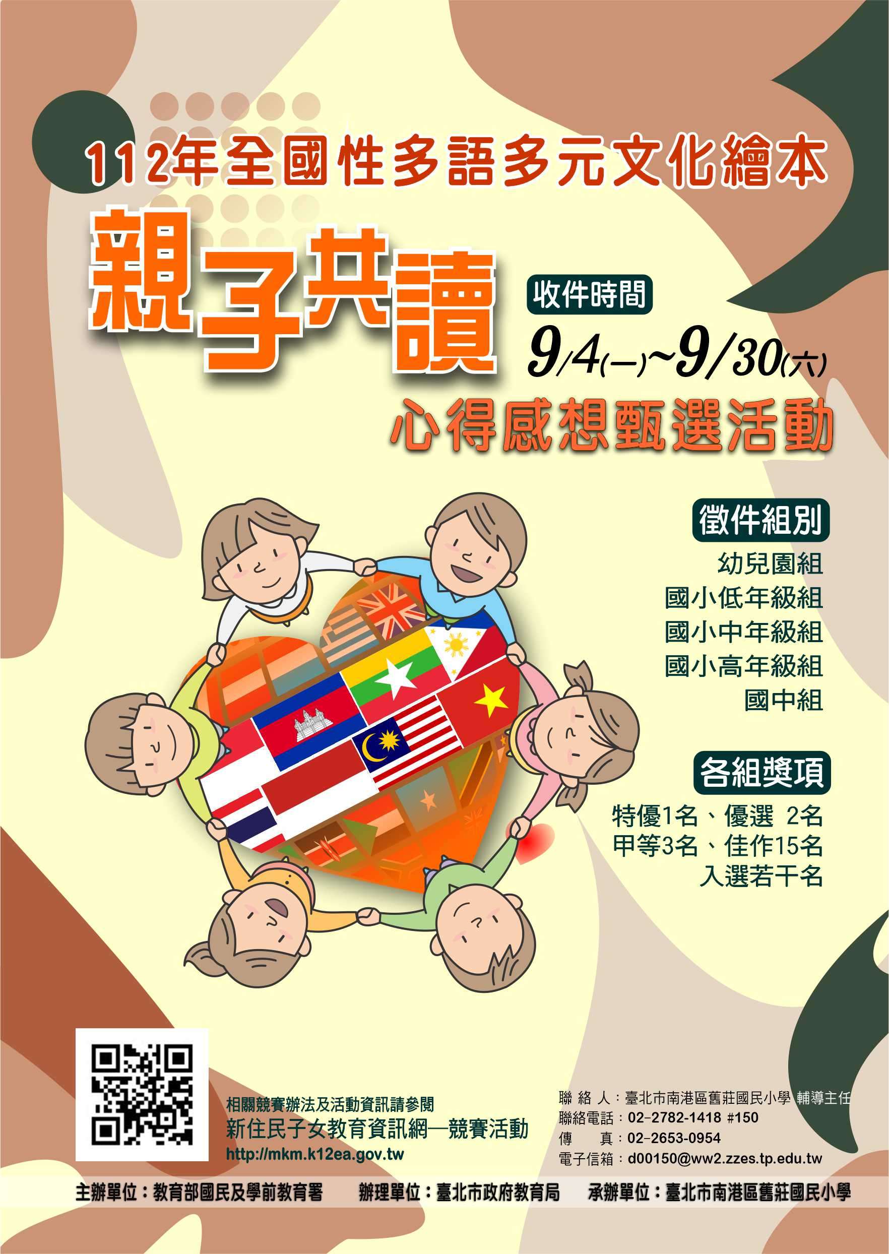 1、徵件主題:多元文化繪本或相關書籍親子共讀心得感 想。