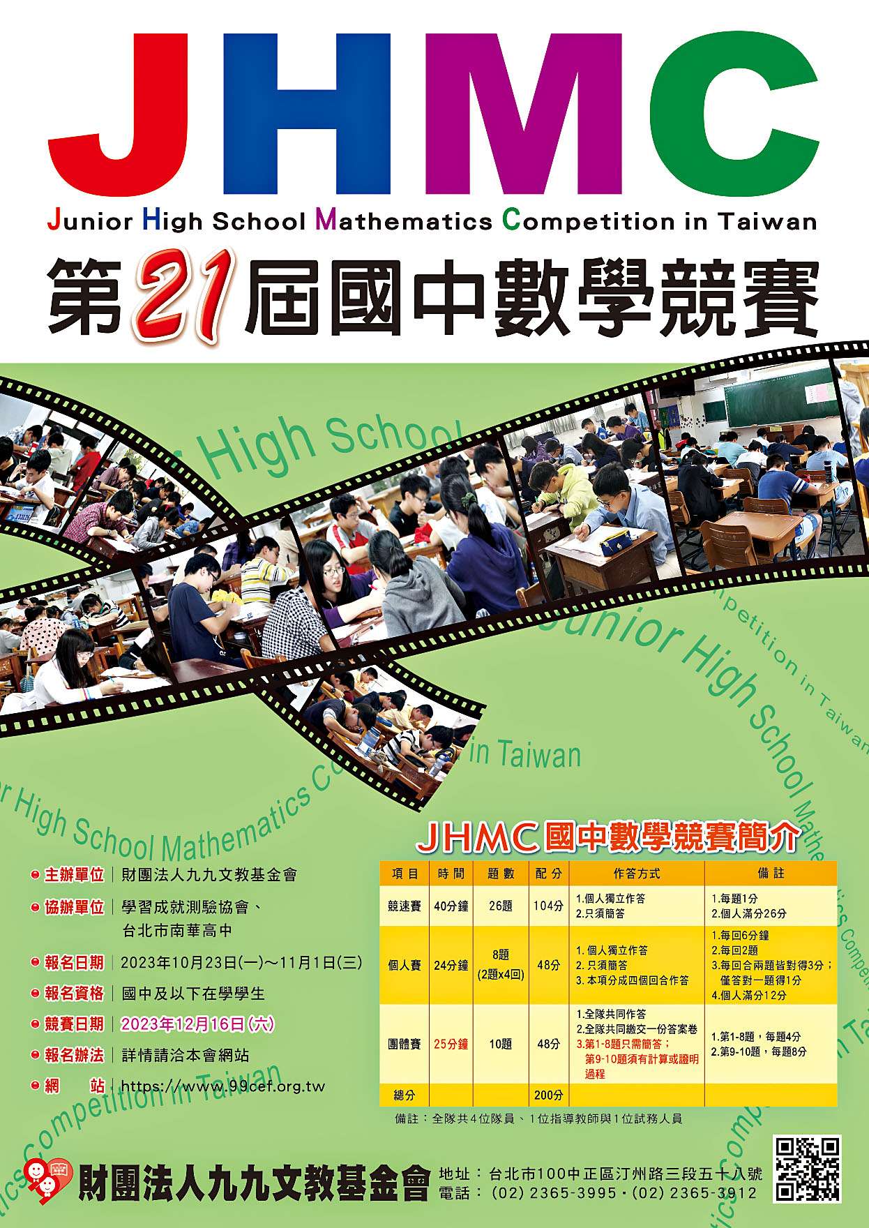 (一)、因場地限制,各地區參賽隊伍數額滿後,JHMC線上報 名系統即不再受理報名,但本會保留調整各地區隊伍數上限的權利,敬請有意參賽之同學,儘快完成報名手續。