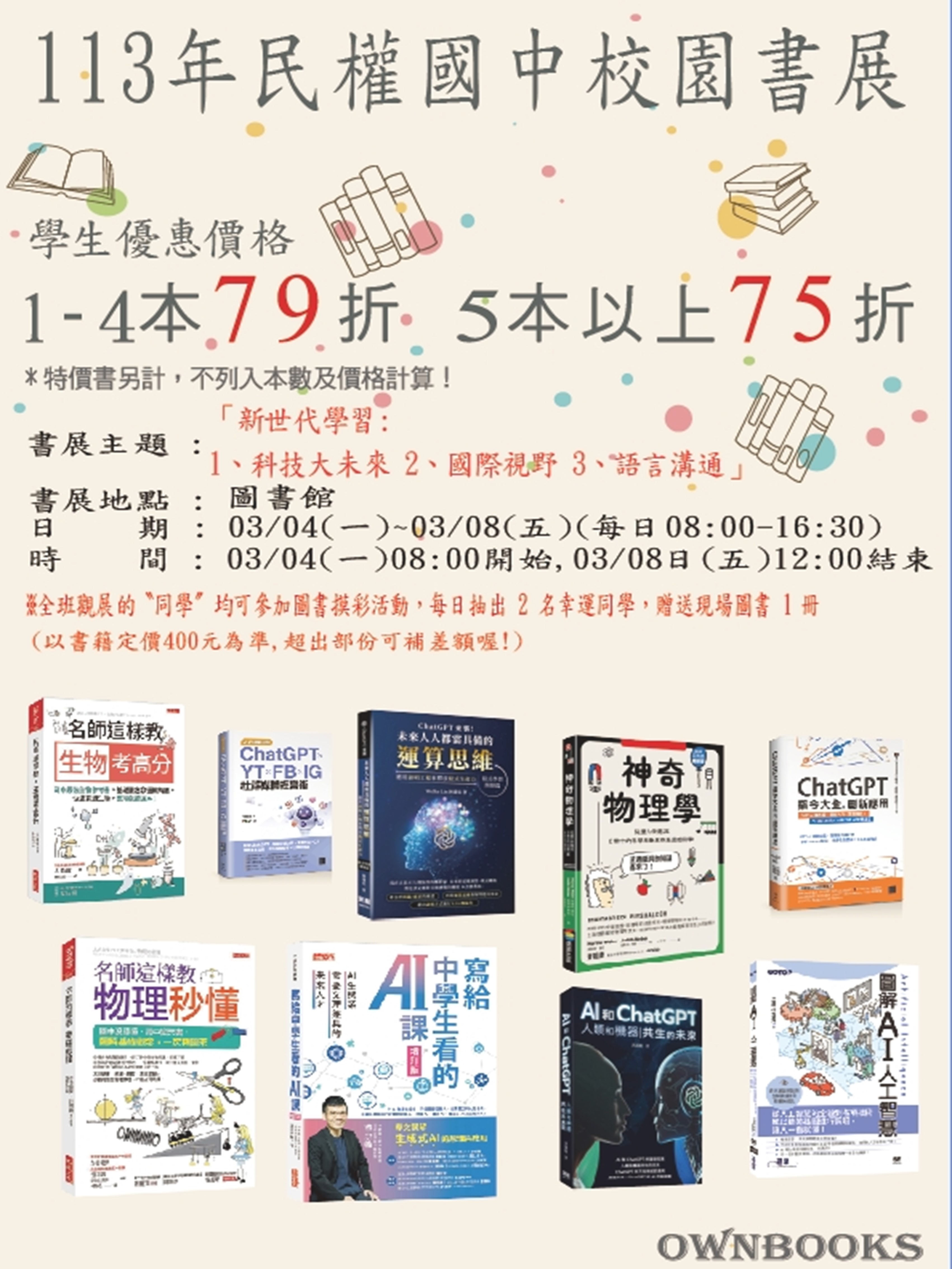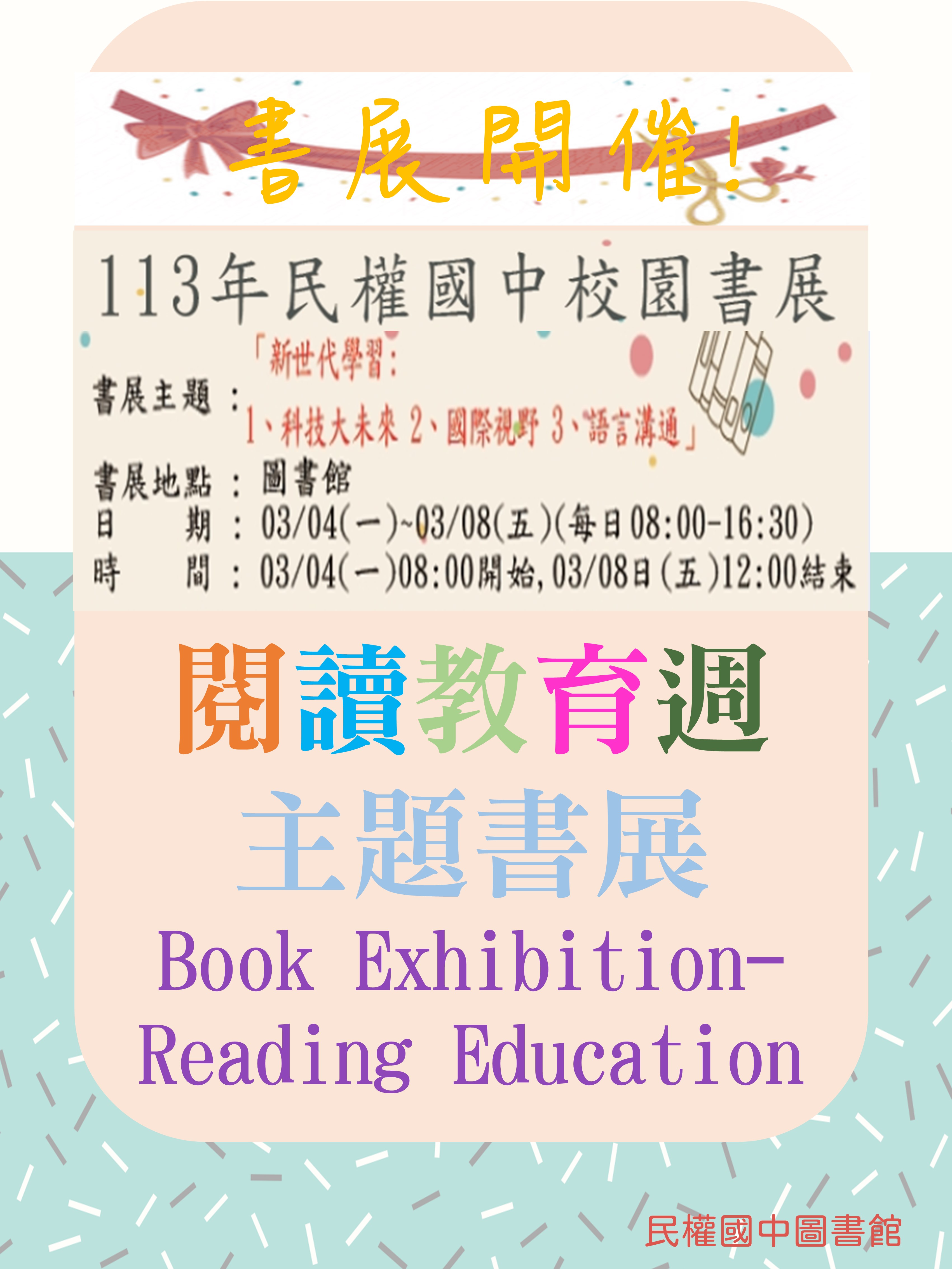 ★113年民權國中校園書展,113/3/4(一)至3/8(五) 開催~★