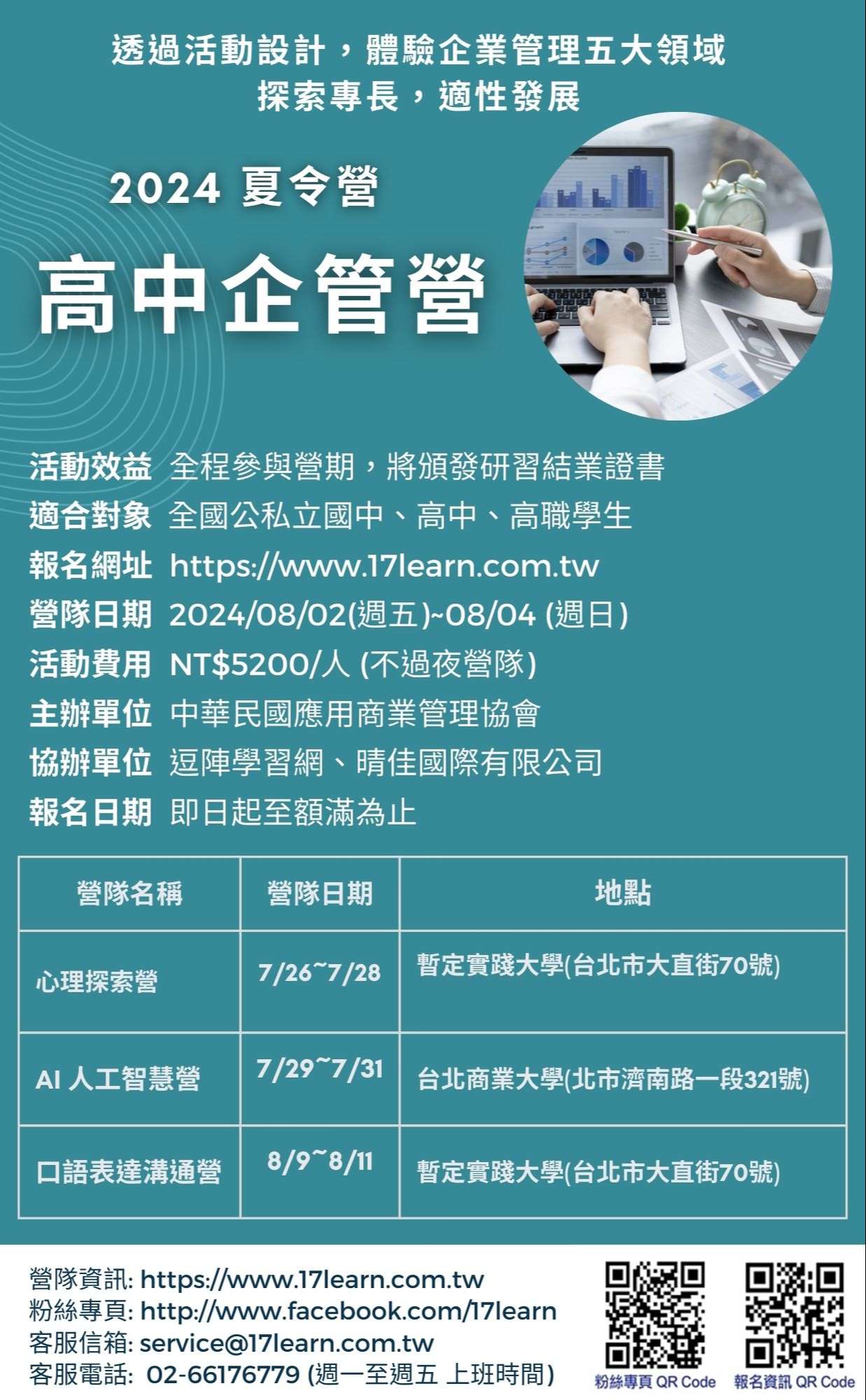 報名網址及營隊詳細說明:https://www.17learn.com.tw