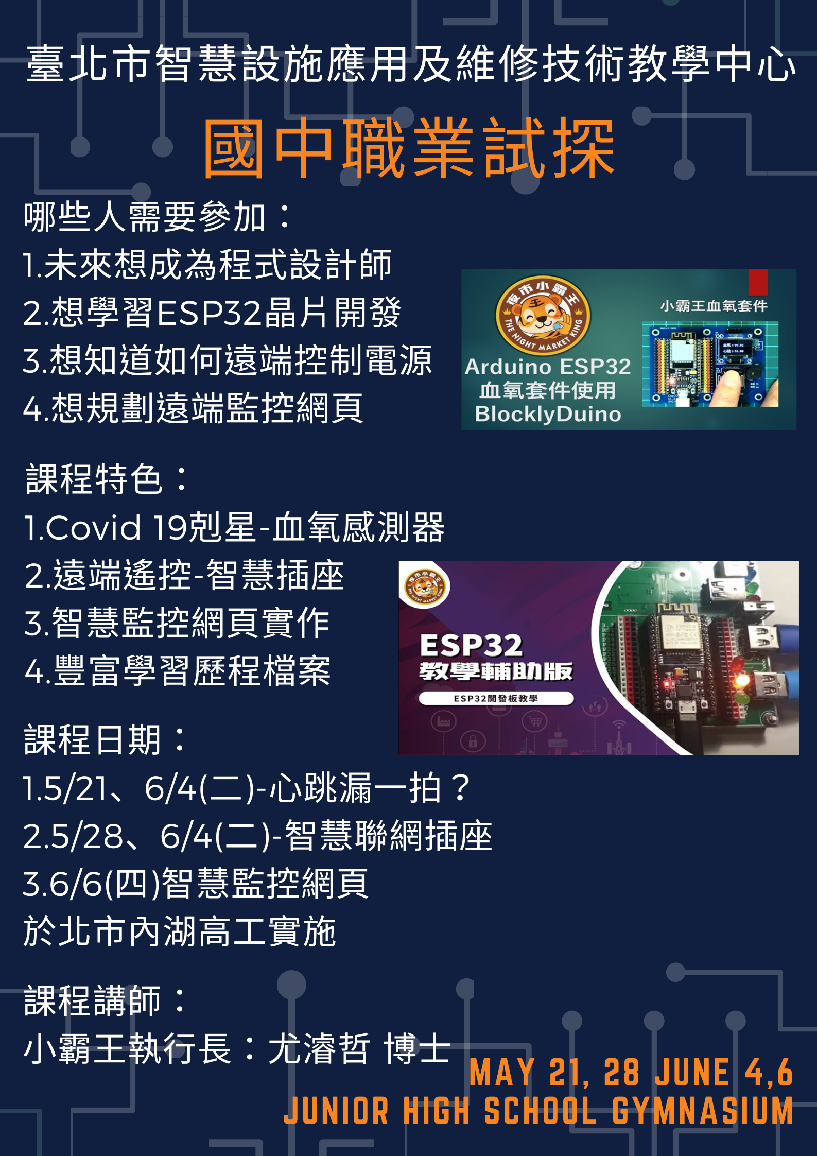 本案承辦人為智慧設施應用與維修技術教學中心負責人蘇恒生教師, 聯絡資訊:02-26574874#266。