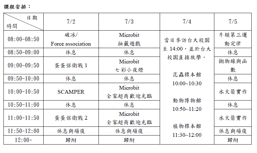 公告暑假STEM育樂營錄取名單及營隊課程安排