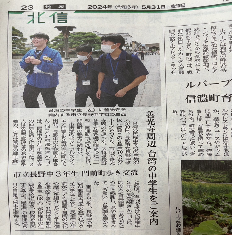 Taipei Municipal Minquan Junior High School organized its first international educational exchange trip and engaged in a two-day exchange activity with partner school, Nagano City Junior High School, Japan.