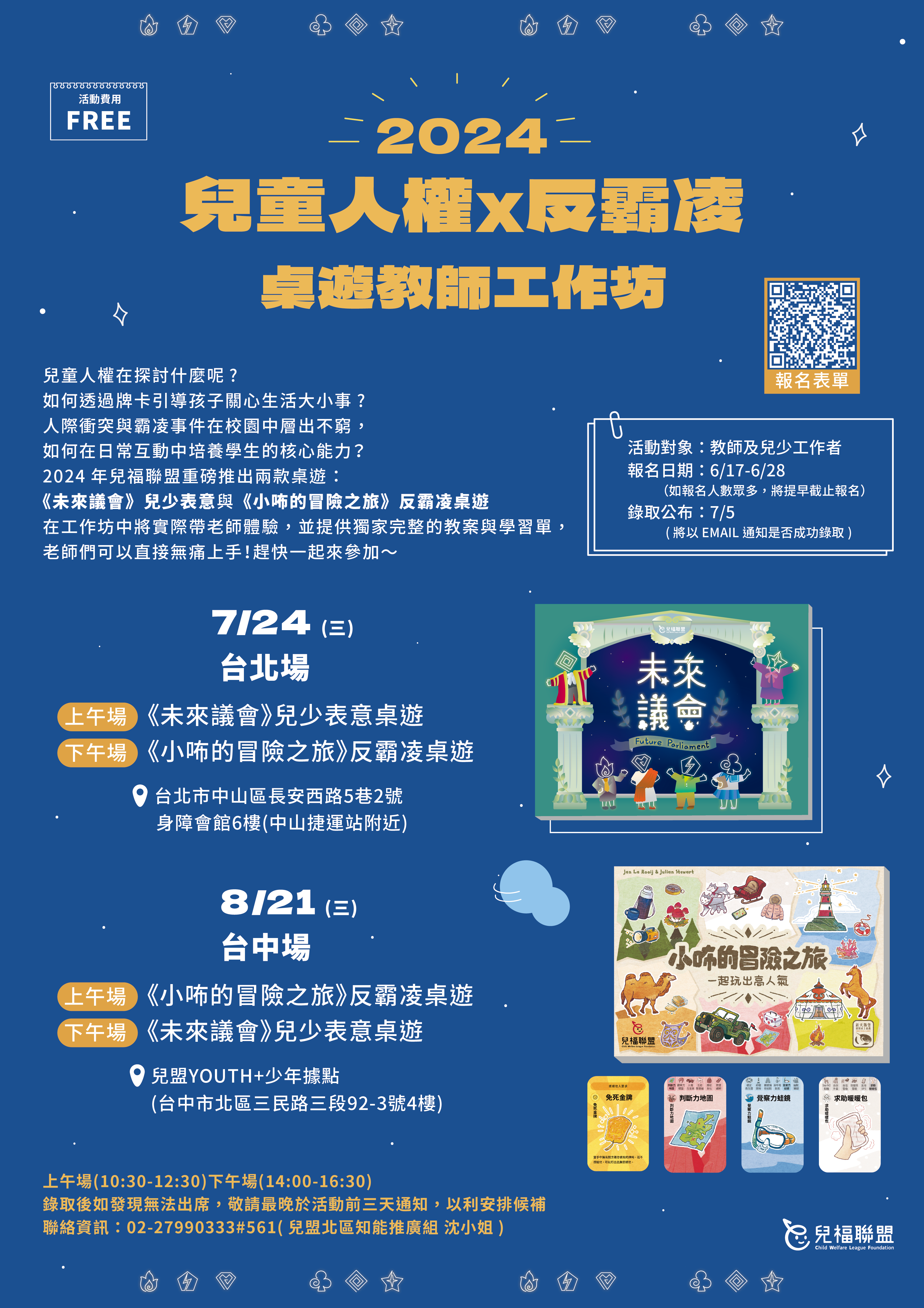 活動聯絡人:兒福聯盟北區知能推廣組 沈小姐 聯絡電話: (02)2799-0333分機561。