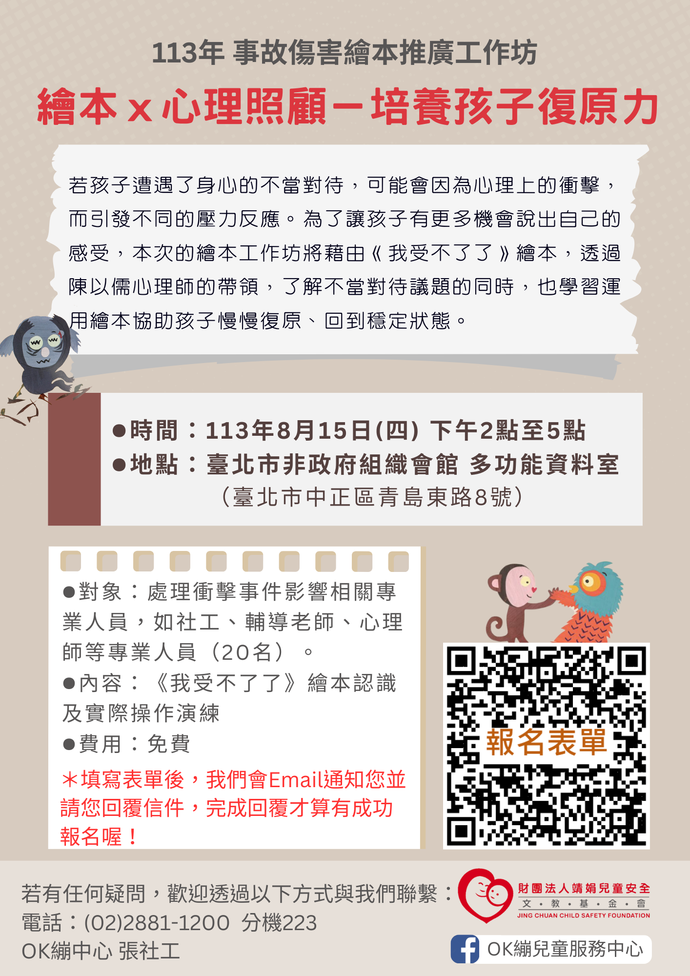 (六)報名洽詢窗口:若有任何疑問請洽OK繃兒童服務中心張社工,電話:2881-1200分機223。