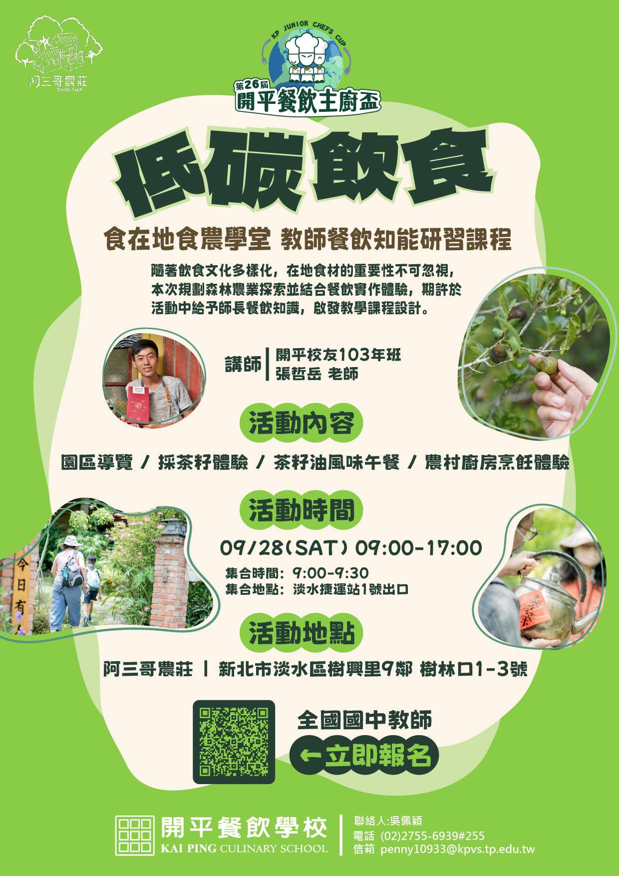 本次活動主題為低碳飲食且融入「食農教育」,透過實作體驗更加了解技職體系,進而發揮協助學生適性就學選擇之輔導。