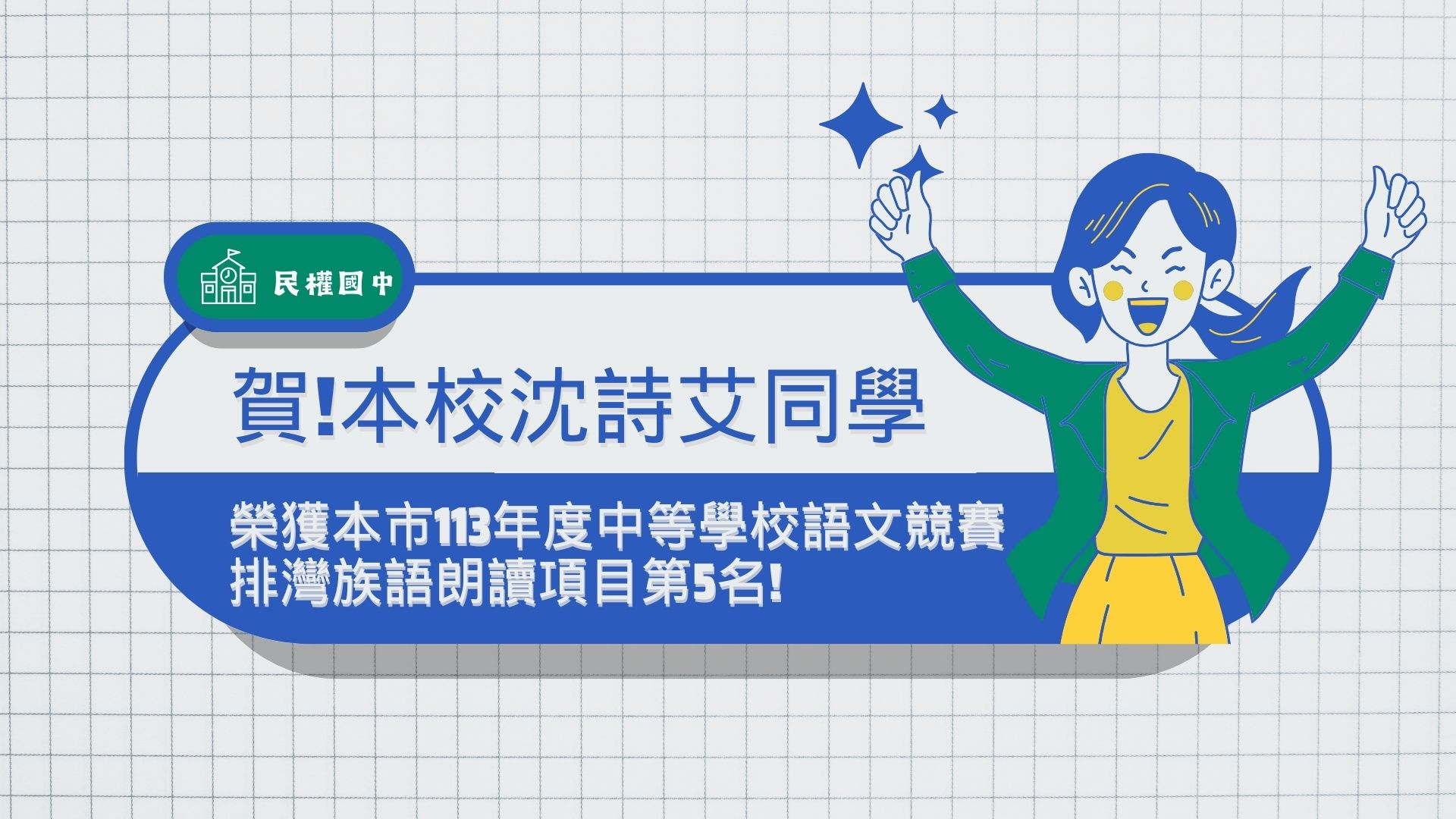 賀!恭喜本校同學參加臺北市113學年度中等學校學生組語文競賽榮獲佳績!