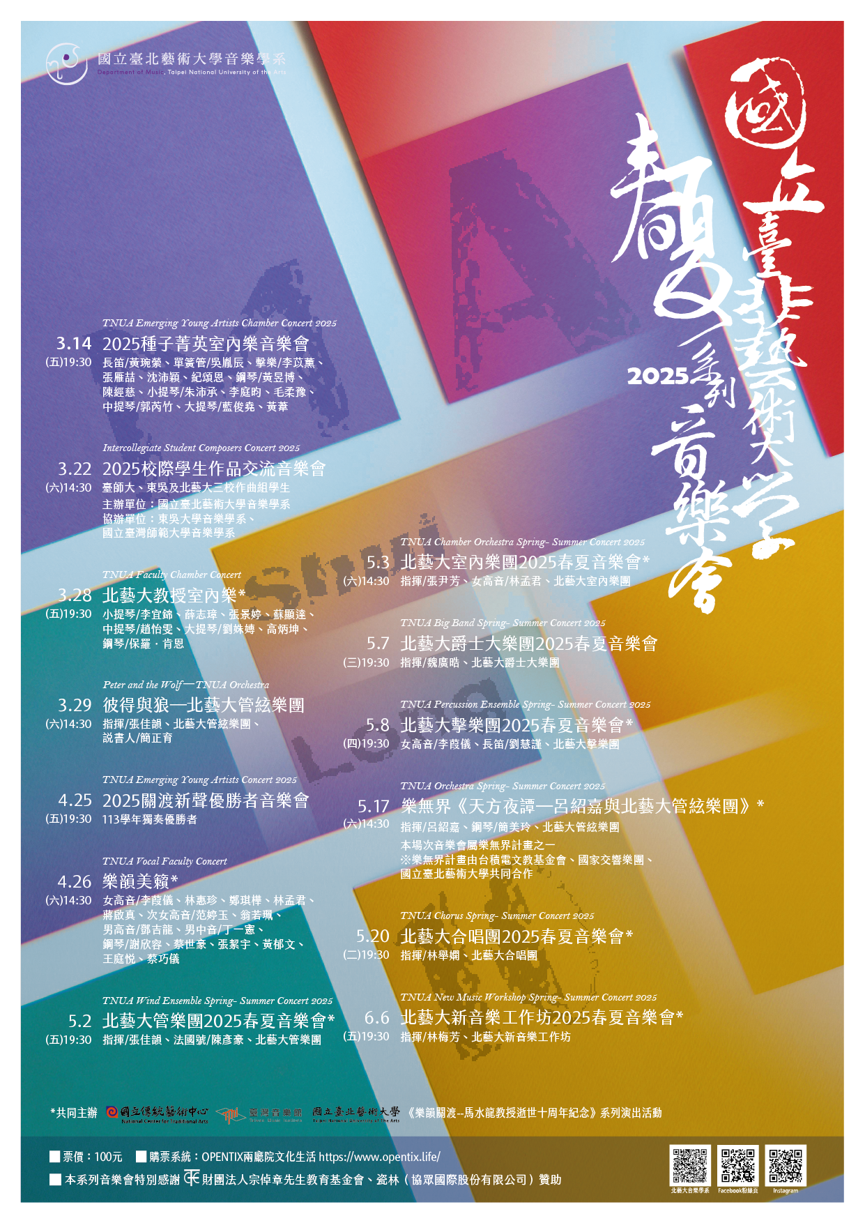 相關活動訊息請至北藝大音樂學系網站(https://music. tnua.edu.tw) 查詢。