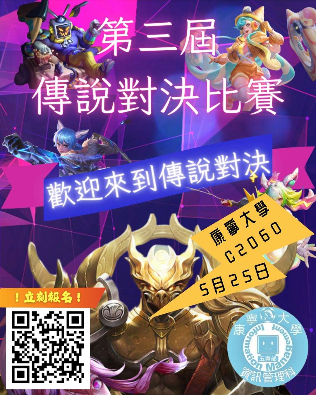 二、本活動由康寧大學資訊管理科主辦,採用手機遊戲《傳說 對決》作為競賽平台,進行5對5團體競賽。