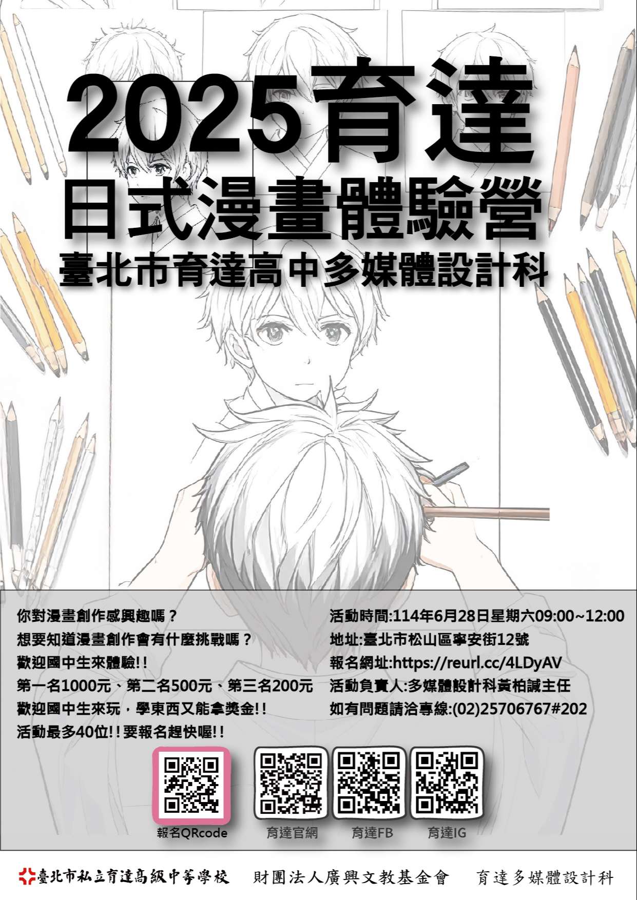 你對漫畫創作感興趣嗎?想要知道漫畫創作會有什麼挑戰嗎?歡迎國中生來體驗!!