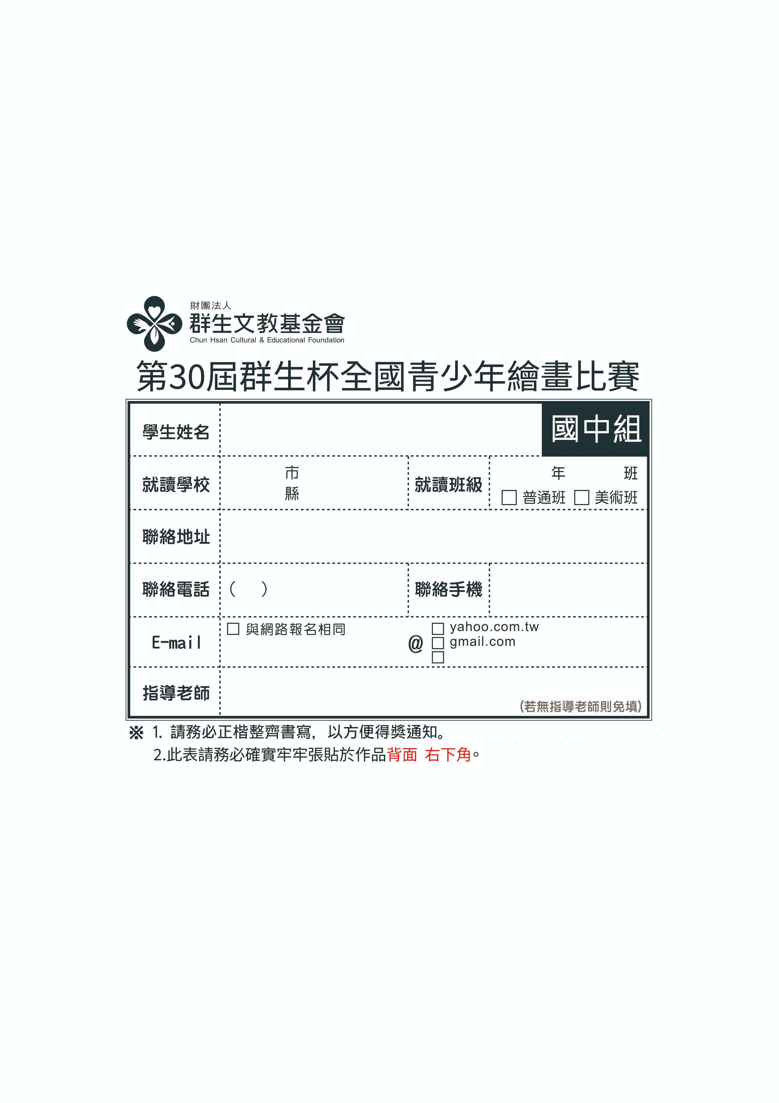 五、比賽簡章公告於群生基金會網站首頁 https://ischool.fhvs.ntpc.edu.tw/ischool/publish_page/193/,敬請下載查閱。